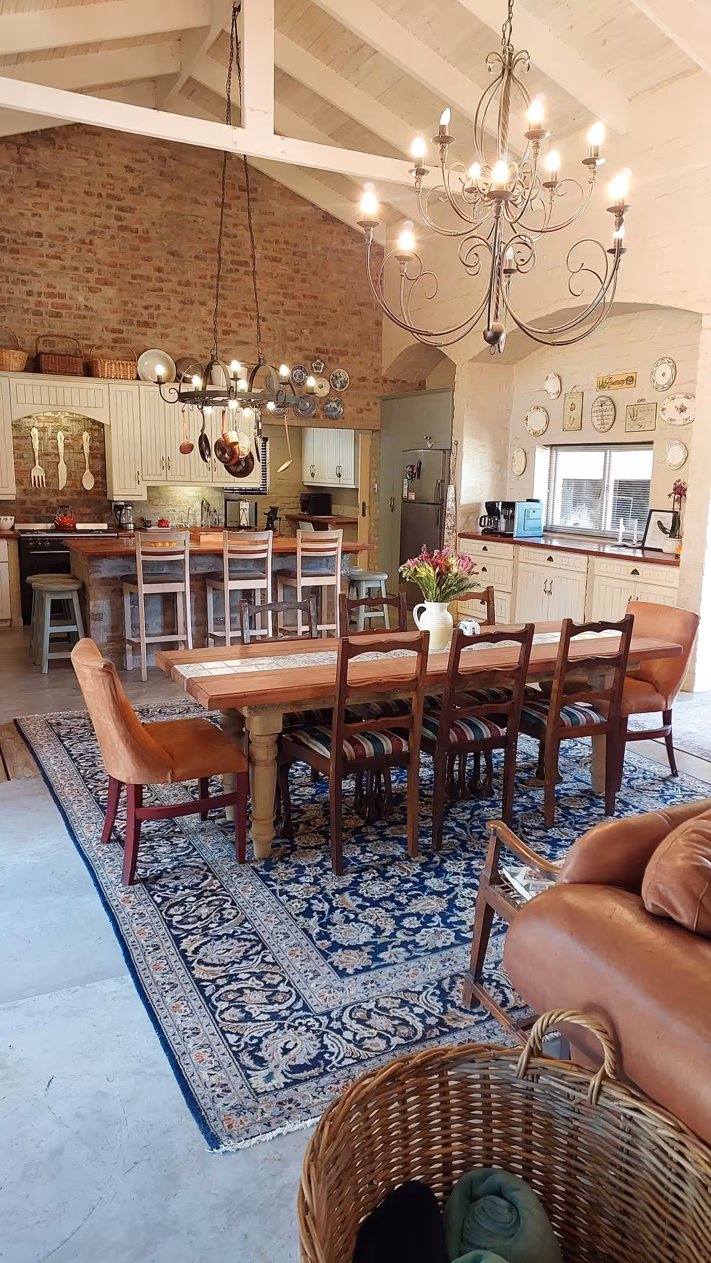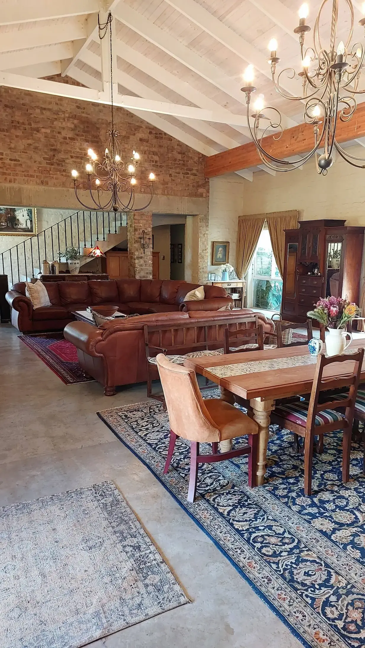 Hartland’s shared spaces are designed for both relaxation and connection, offering a warm and inviting atmosphere for every guest. The spacious living room, adorned with elegant décor and plush seating, is perfect for unwinding with a book or gathering for meaningful conversations. Step onto the scenic stoep, where breathtaking views of the pool and sprawling estate create the ideal backdrop for morning coffee or sunset drinks. Whether sharing a meal at the outdoor dining area, enjoying the cozy ambiance of the indoor fireplace, or simply soaking in the tranquil surroundings, every corner of Hartland is crafted to bring people together in comfort and style.
